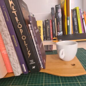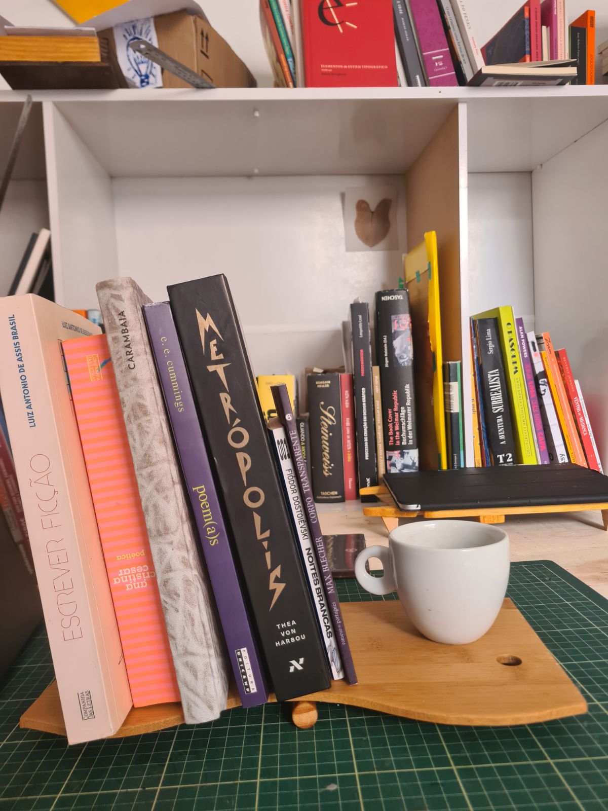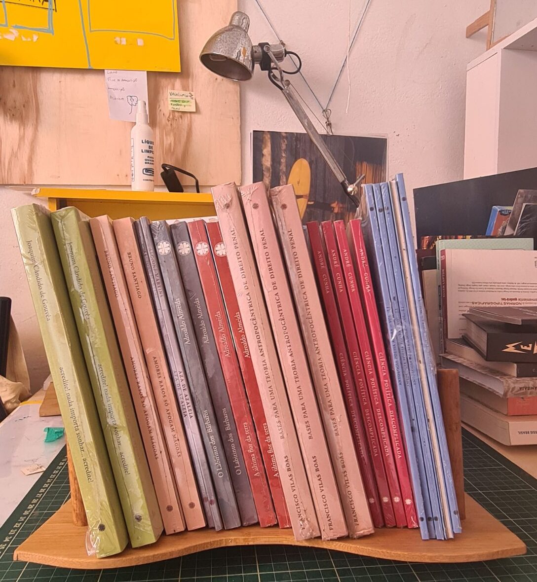 Esta é a livreira que usamos na editora para organizar o estoque e também em exposições. Feito para bibliomaníacos.